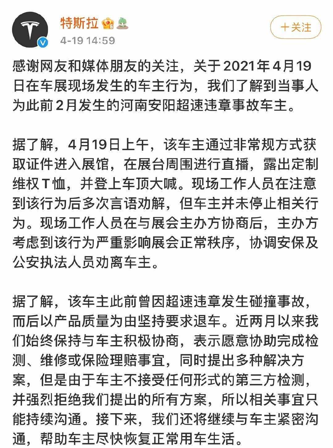 4月19日,2021上海国际车展媒体日首日,特斯拉展台出现车主维权事件,相关视频立刻在网络上广泛传播。