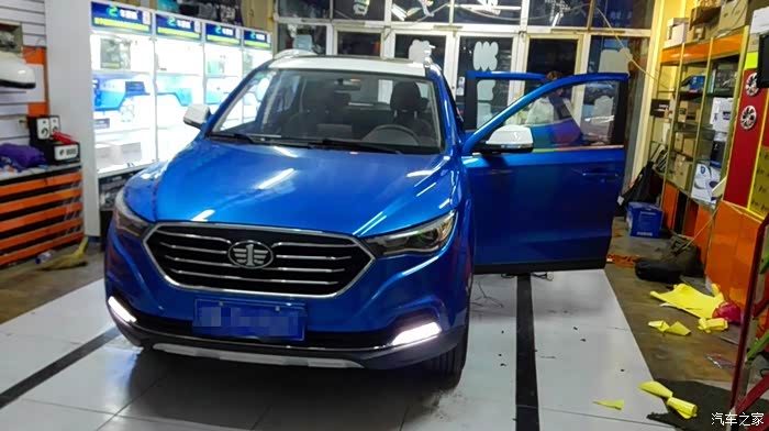 刚好店里的车施工完毕开走,我的车进店里施工,外面已经有点黑了,看不清楚。