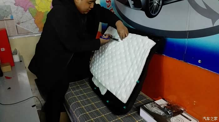 这是把隔音垫切成条,先处理最外侧的门板。