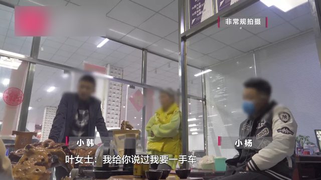在记者和李先生沟通时,他的侄子小杨和小韩来到了现场,两人也坚称,他们和叶女士的交易是双方的私下行为,与李先生的车行无关,而对于叶女士当初所提的购车要求,两人也表示空口无凭,记不清楚了。