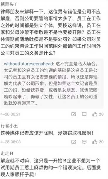 也有人认为工程师虽然有错,但不至于被开除;还有人认为,这件事是企业不想为一个试用期员工惹麻烦做的一个错误决定。