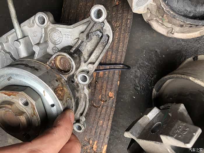 水泵漏水严重,买了改进版的水泵350元一个。这个更换很简单,皮带取下,下盘上的三颗螺丝跟水泵上的7颗螺丝。