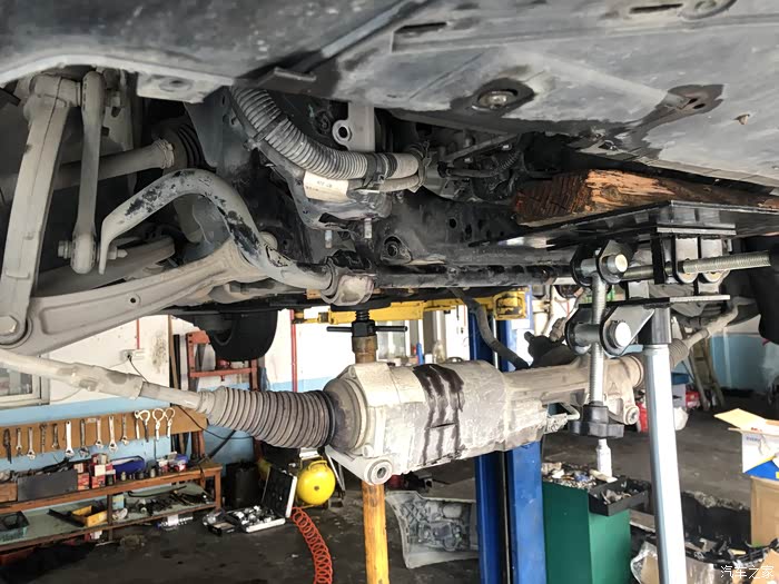 解决办法:换。2.5的车其实换鸡脚也不复杂,一般店里都是拆散热器,其实不用拆,我的换法就是参考网上把转向机挂下来,把发动机顶上去散热器也就跟着一起上去,藏在散热器背后的两颗螺丝就露出来。