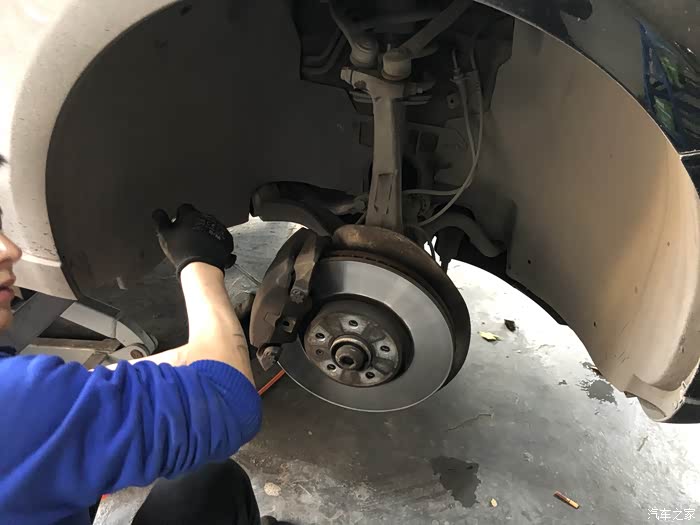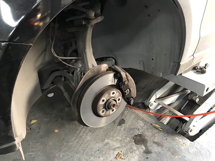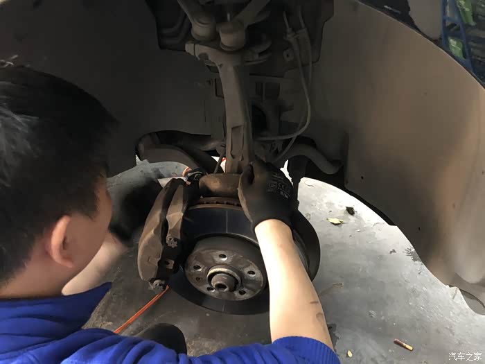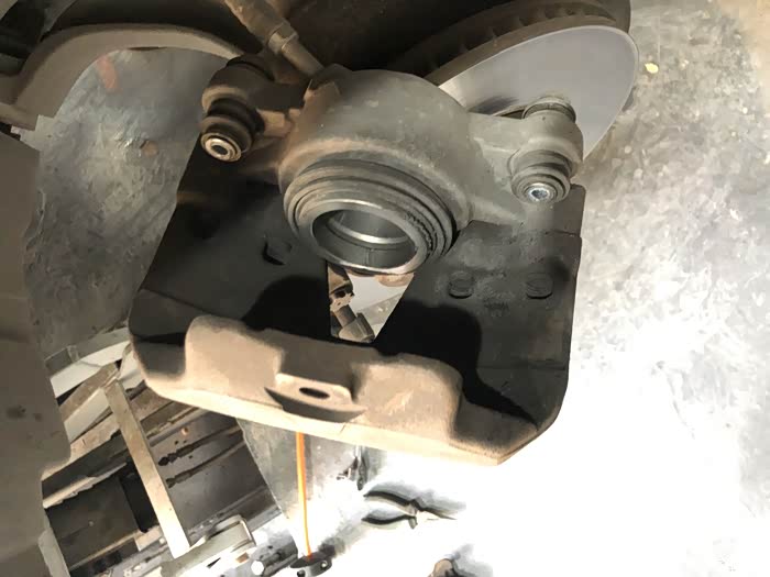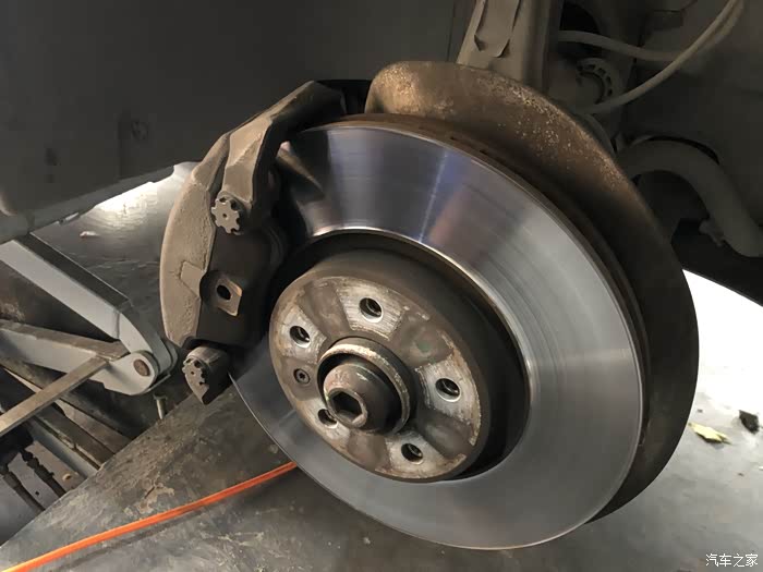 另一边也拆了,刹车盘虽经过几万公里的摧残,但磨损不大,奥迪车的质量可靠性还是可以的