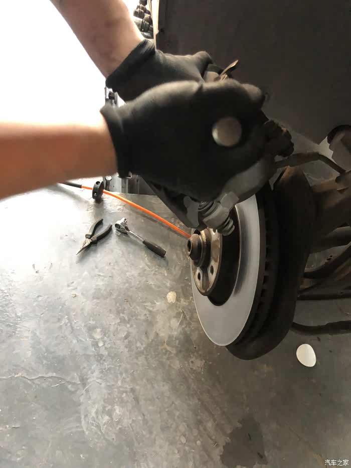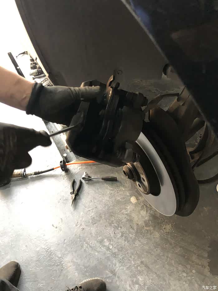 拿下旧刹车片,分泵活塞要复位才能装上新刹车片