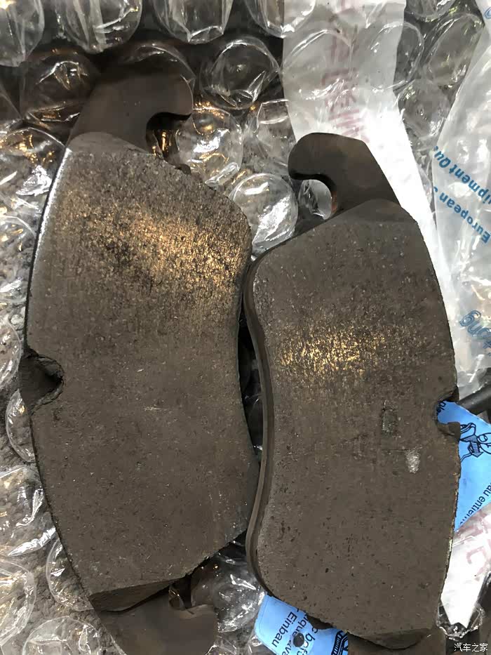 旧的原厂刹车片,斑斑点点的,金属成分看起来蛮高的