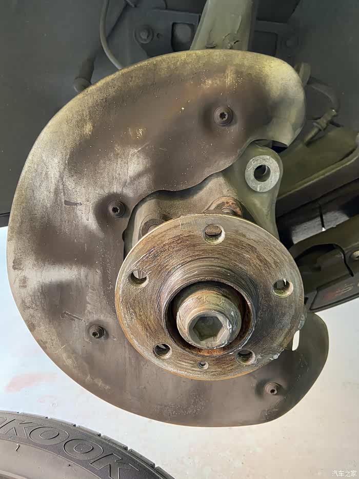 轴头涂抹润滑脂,一来防止生锈,二来以后拆刹车盘的时候不会锈蚀难拆。