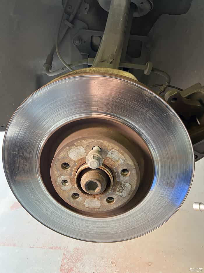一只盘已经光好,看着很平整了。刹车盘最多可以光两次盘就要更换了,师傅说我这只盘应该还能用4~5万公里,那就过两年再换盘吧。