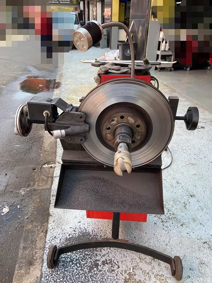 这个机器就是光盘的设备。把刹车盘固定到机器上,设定好参数就慢慢的进行抛光了。一只盘大概要40分钟左右的样子。