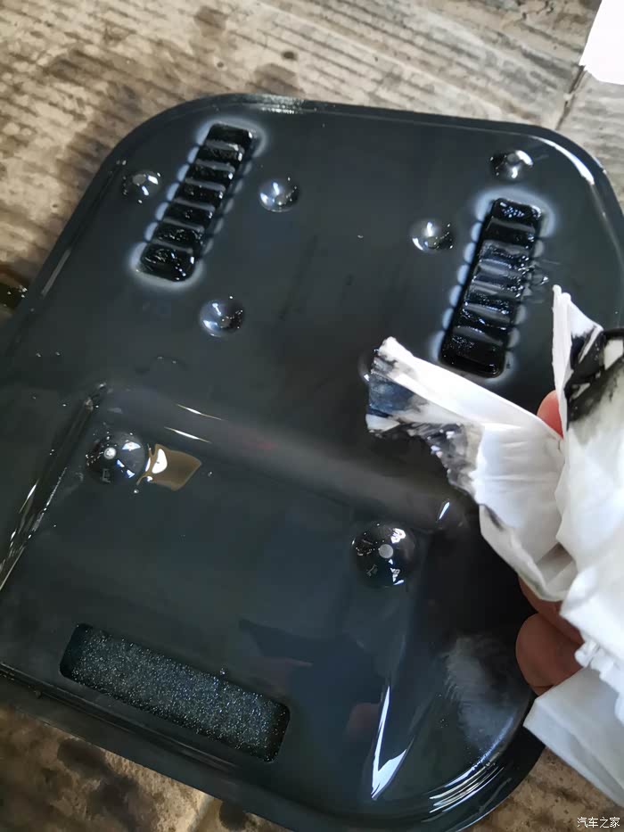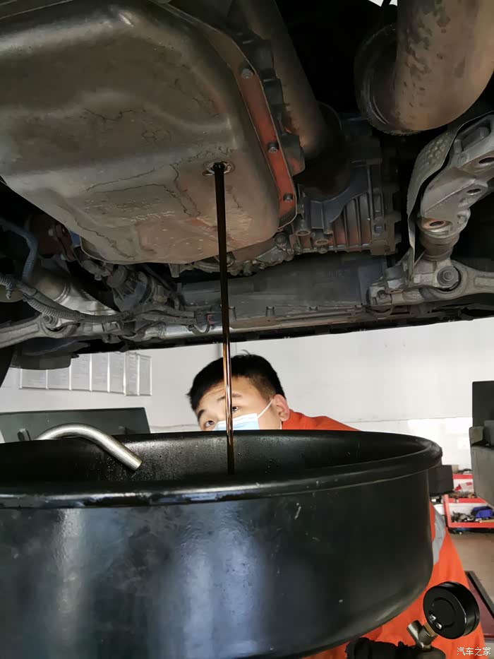 油堵松开放油,油还好,不脏,黄亮黄亮的,提车不久就试过连续5次弹射起步,看来对变速箱油的影响也不大。