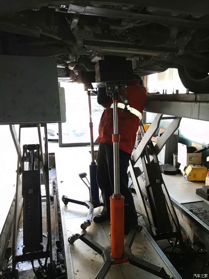 撤掉了前面的千斤顶,只保留了后面顶着拖森中差的千斤顶。