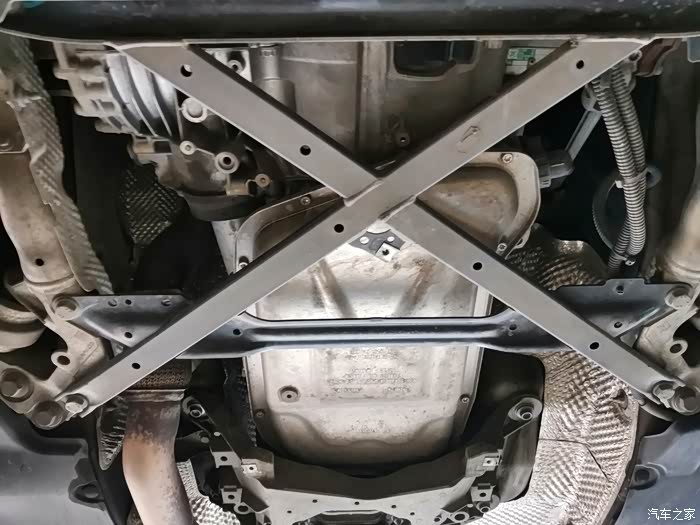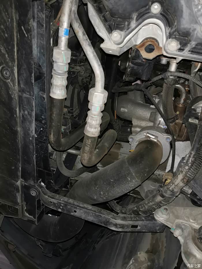 发动机塑料油底壳,可见电子机油尺传感器水箱,中冷及经中冷后的进气管。