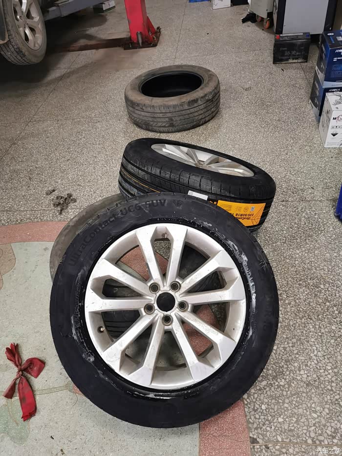 再看看轮胎被造成什么样,爆了一个,直接上备胎