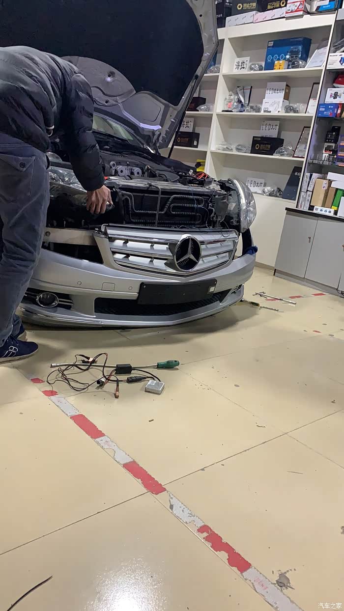 因为车子一直有一个故障灯(驻车灯左前侧),找了很多修理厂,包括4s店都无法解决,修理厂的说法是某个灯泡烧了,但是检查后灯泡都是正常的。4s店的说法是车型太老,4s店不建议维修,并且要把全车的线路复原(因为我改了氙气灯的缘故,无法复原),所以就没管了,就是每次启动车子后都会跑出来,需要手动按一次才消失,对于有强迫症的我来说,不能忍……但是又没办法解决,恰好这时候我在某宝看到一款大灯,是w204专用的,有点模仿新款w205大灯的意思……于是干脆直接换一对大灯,结果换了之后,悲喜交加
