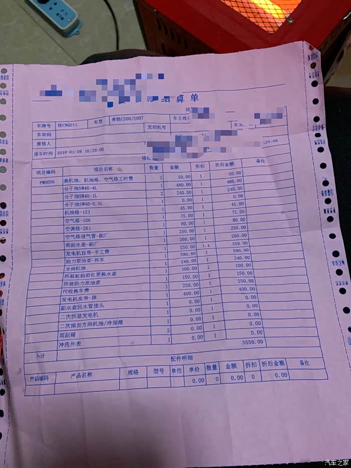 买回来使用了几天后决定给他做个保养先,于是最终去了昂贵的4s店做了全车检查并更换了机油等花了差不多2千大洋。