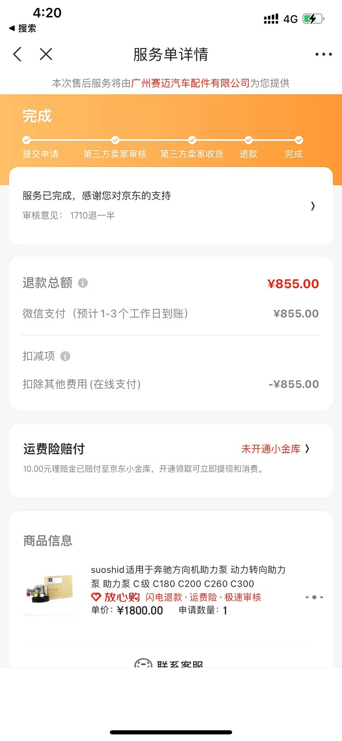 由于更换的助力泵可能是拆车的原因,磨损程度不一致,导致打方向异常的重,自己又去某东买了个博士的,入手是1710元,找了个修理厂花了200手工让师傅换上,换上之后感觉方向还是重,于是跟店家协商退了一半