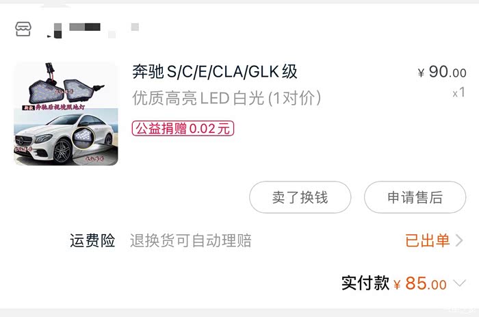 顺便买了led的照地灯(高配的后视镜下方有)开车门可以照亮两侧地面
