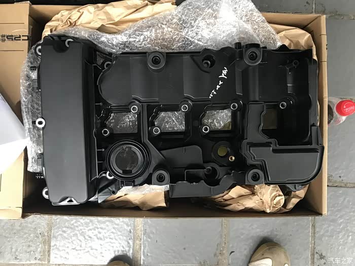 拆掉气门室盖,缸盖上没有油泥,说明之前保养用油这些都比较正常,但是发现了重新打胶的痕迹。说明之前车主已经发现气门室盖后端渗油,且用了很简单粗暴的方式处理。拆下的气门室盖,检查了确实封边脚垫都很多处开裂,肯定是会导致渗油,更换掉。