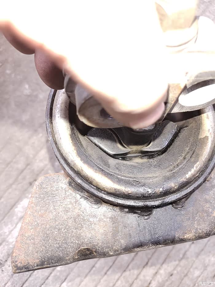 螺丝打掉了,有个故事,机脚拿不下来,后来把车底的千斤顶再往上顶起,机脚很容易就拿下来了。还有个故事,左边那个螺丝是尖尖的,我的套筒嫌短了,没办法只能跑店里重新买了19的长套筒,幸好店离家不远