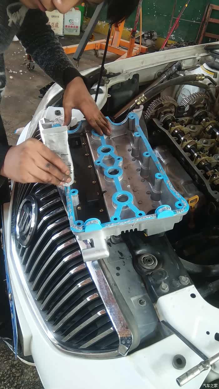 气门室盖取下了,小师傅在清理胶水,胶泥算是正常水平吧。