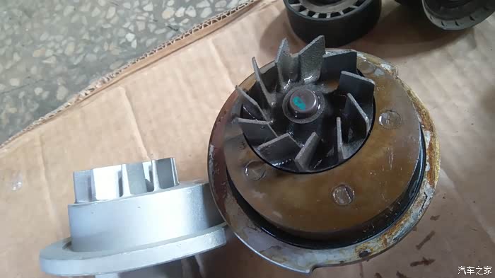 水泵也拆下来了,暂时没有问题,但凯越的水泵是用正时皮带带动的,拆一次不容易,还是换了省心。