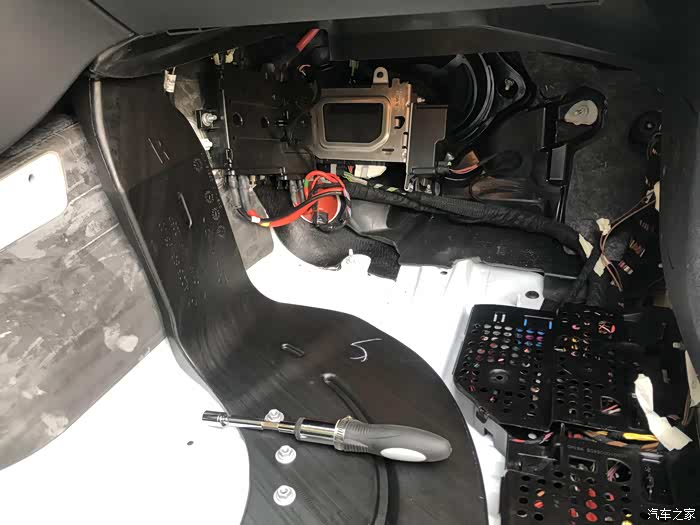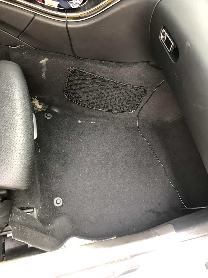 首先把座椅调到最后,取出脚垫,然后顺边一点点拉出地毯(请忽视那根行车记录仪的走线)