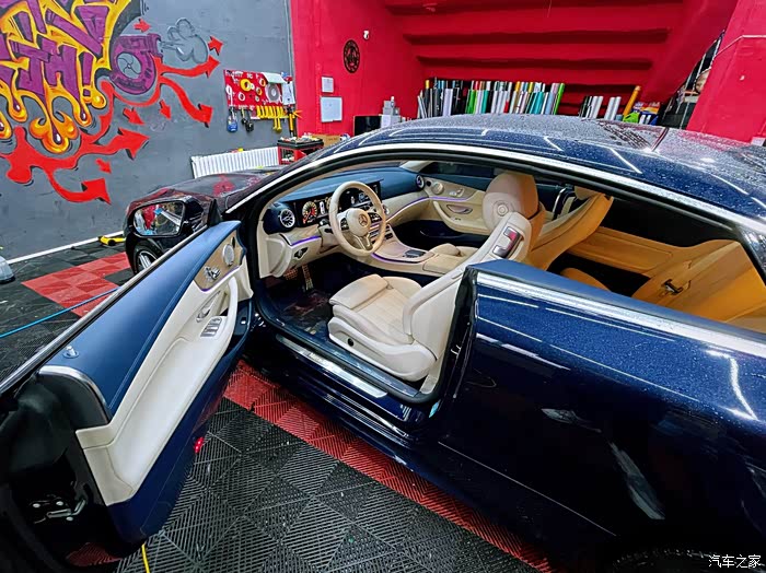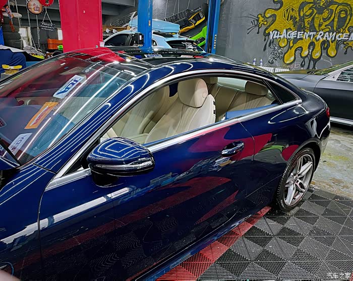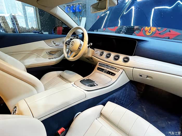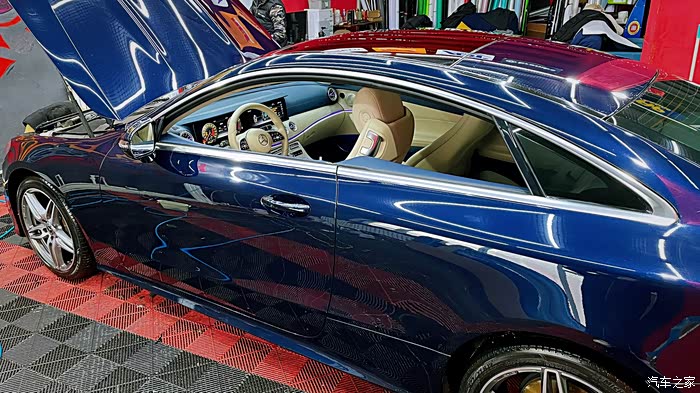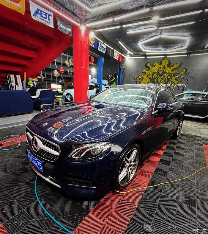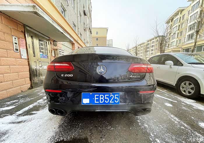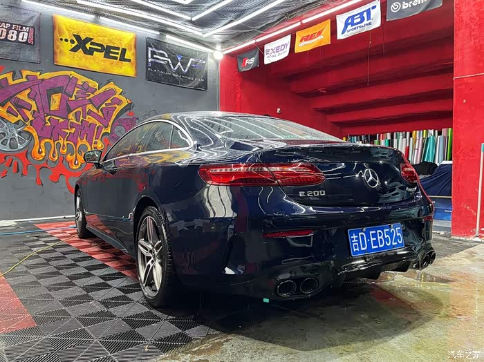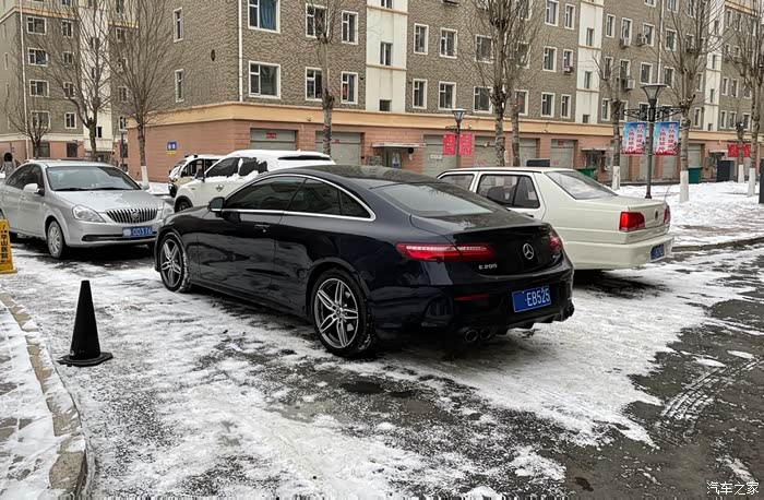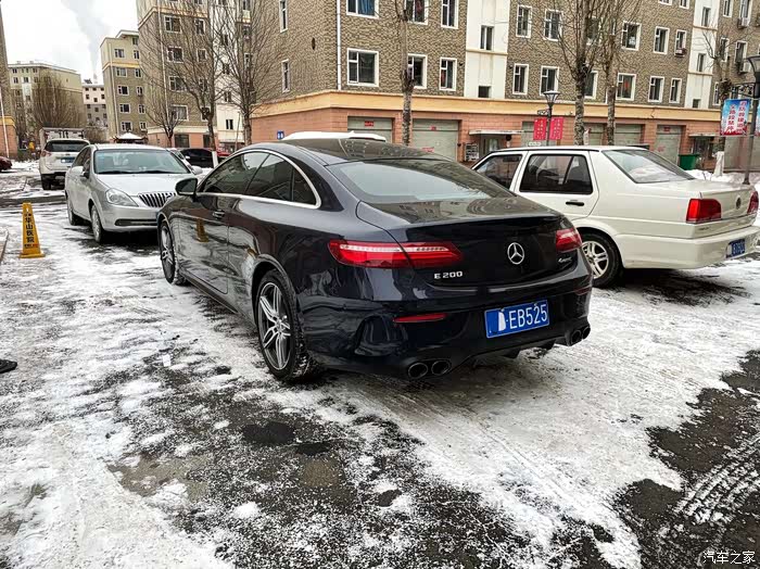 小Ec对我来讲可以说是一见钟情,看到第一眼之后什么动力、什么声浪,全部抛到九霄云外。优雅舒适就足够了!游艇蓝内饰真的没得说,感觉跟一些超豪华品牌对比也不逊色太多,也许是自己太喜欢了吧。无b柱设计、安全带推送,真的是被这些细节迷的神魂颠倒。舒适性方面,作为一款双门轿跑车,后排真的没得说,后面坐两个大汉一丁点不挤,毕竟这一代开始是使用E级底盘,并且接近5米的车长对舒适性有很大加持。就是上下车麻烦点,这个缺点一直被老婆诟病,我一直劝老婆这样更多了几分仪式感。既然是轿跑不得不提一下动力。因为在北方,所以当初买车只考虑四驱,毕竟家人的安全才是最重要的,也因为这个原因,不得不抛弃E300,选择了E200四驱版本。动力方面按照我个人的理解,没有肉车,只有肉人。E200不能说动力多么出色,但只要敢踩,至少不能说是一台肉车,双门的调教跟四门比起来还是有一点区别的。s+模式地板油排气声浪也是挺给力的!这次轻改只是更换了一套四出排气。视觉马力加持至少100匹。本来一直心疼车不想改动,但从小有一个四出梦,或者说是跑车梦。就让这次轻改满足一下自己的小情怀吧。话不多说,直接上图!