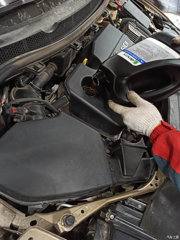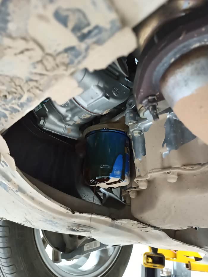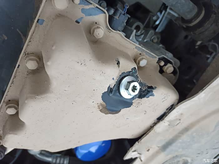 换完机滤后,把放油螺丝上好了,下一步就是添加新机油了。