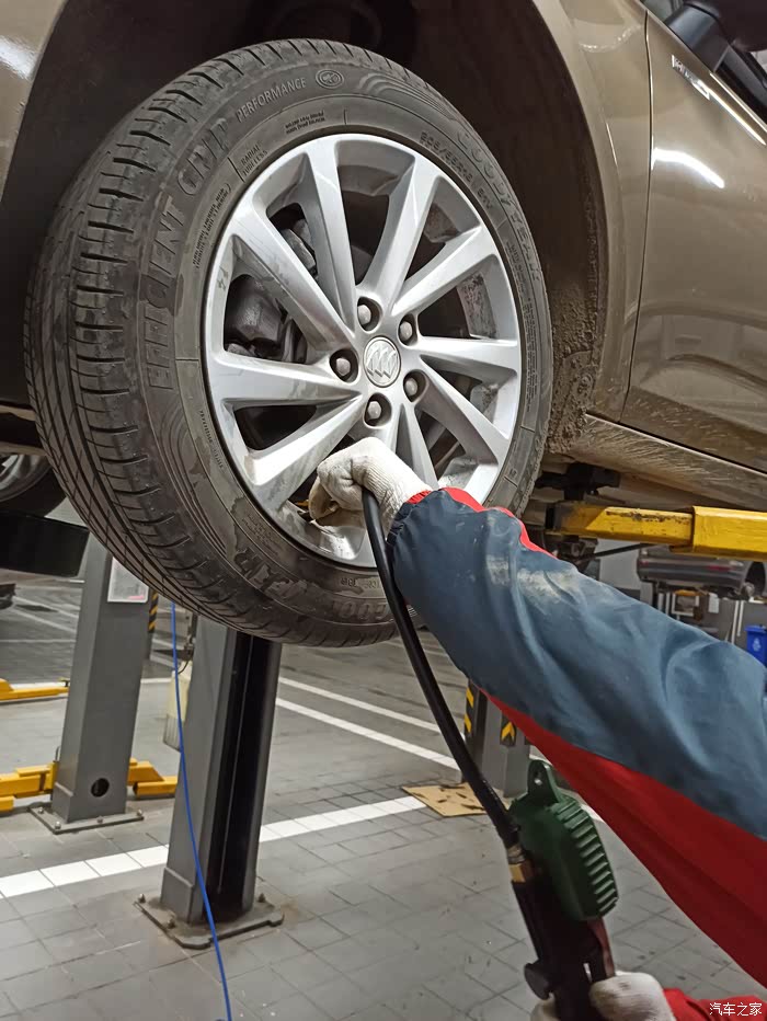 维修师傅给每个轮胎都检查了下,缺气的都给补足了,非常的细心,为师傅的认真负责点个赞!