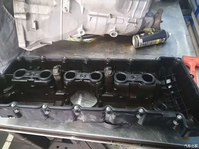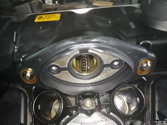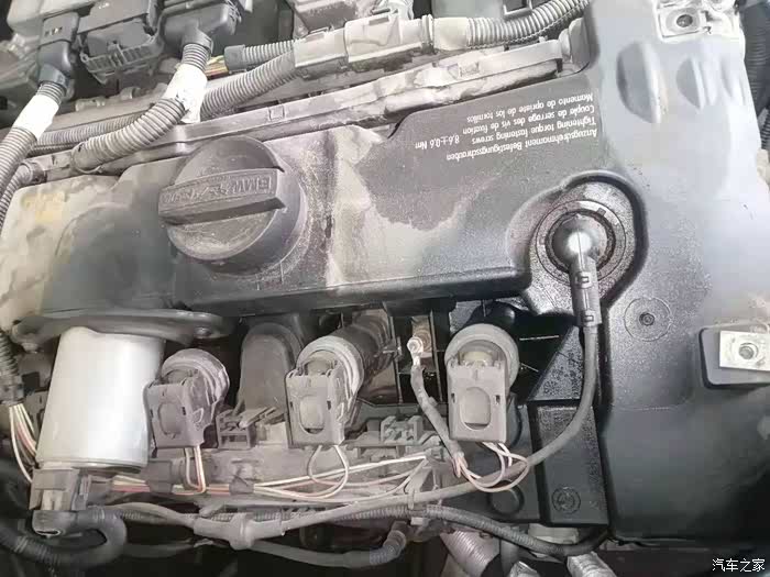 打开机舱盖,拆掉装饰盖映入眼里第一个容易漏油的地方气门室垫导致漏油。