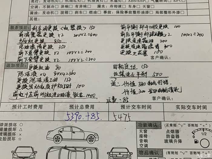 1:上面放了一部分整备项目,大致是全车油水保养。
