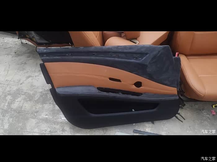 这些是改之前原车的内饰,很多地方有些磨损。遵循参考上图几张,仪表台翻毛皮,中控翻毛皮,顶部,后部翻毛皮,扶手箱门板四柱翻毛皮拼棕色皮,座椅棕色皮,全包围脚垫,棕色。原厂桃木内饰改碳纤维。按键全部翻新喷漆激光刻字,原车米色安全带及米色塑料件更换成黑色。