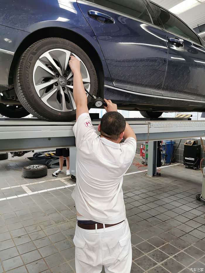 天气炎热,跑高速来胎压都2.5了有点高,师傅给放点气。根据手册来2.2就好。