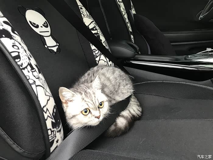 给憨憨系上安全带,一脸的不情愿,它动几下,座位上全是毛
