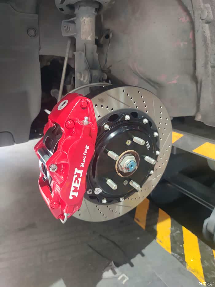 换了轮毂怎么不改一下刹车,这个是国内的TEI,国内刹车钳也不差的,起码比原厂好啊,AP,布雷博等刹车钳水很深,不敢乱买,主要兜里不够,如果是下赛道激烈行驶建议选择大牌货,质量更有保障一些。