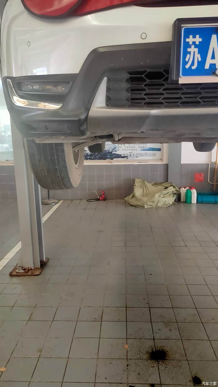 开车近十年第一次自己用这玩意,以前都是看别人用。地上一滩是地面水迹,不是漏油。