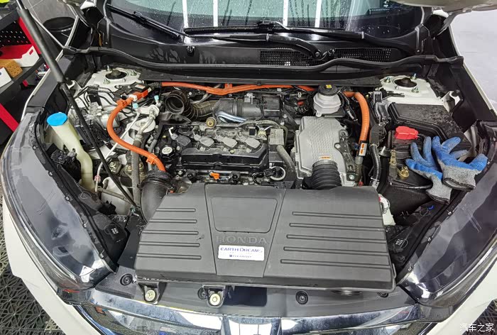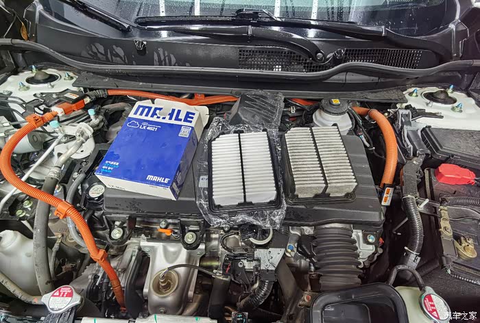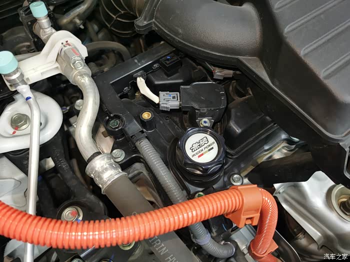 这个看似中冷的部件,其实是电控单元PCU的冷排,用的也是本田2号防冻液,所以机舱里能看到两个冷却液水壶