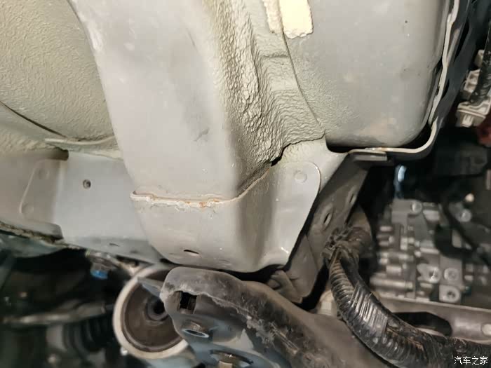 底盘上没有被保护到位的车身,有轻微锈蚀
