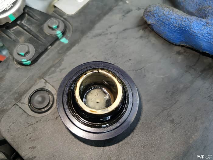 车子两年刚出头,跑了2w4了,离上一锅油已经5000了,又该换了,因为懒,机滤就不换了,反正原厂手册也是推荐每两次换机油换一次机滤。除了常规的换机油,该检查的地方还是要检查,换机油就不啰嗦了。检查机油盖。