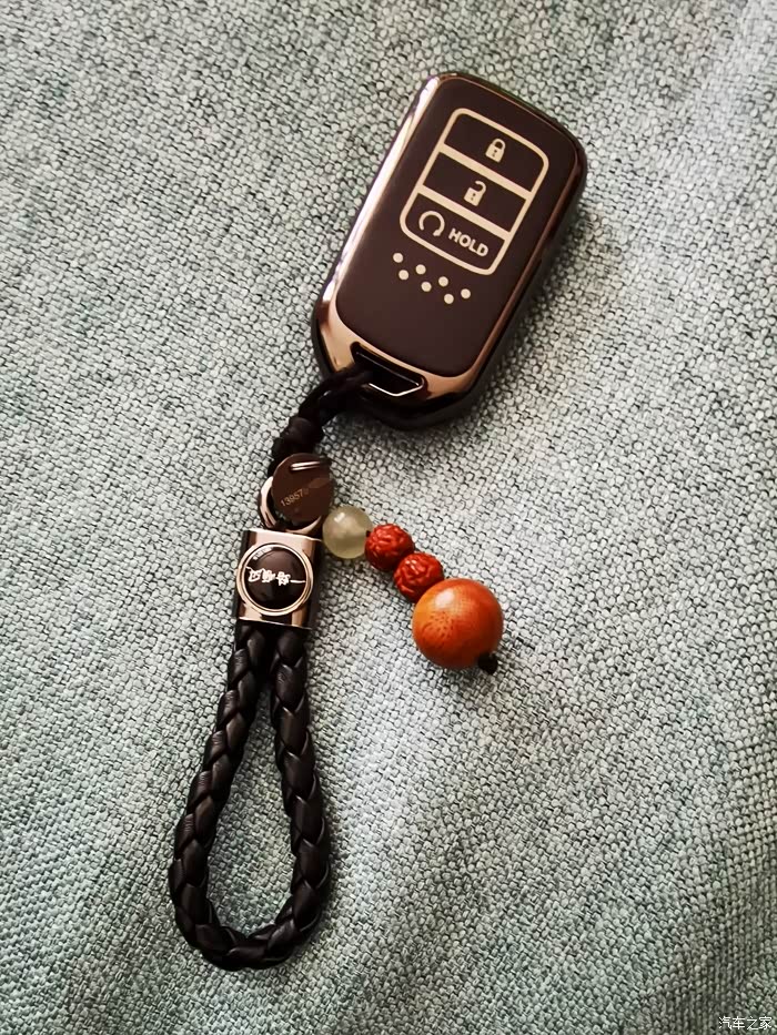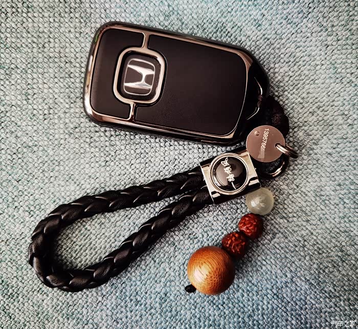 钥匙保护套和刻的电话号码,这样就不用担心丢了。