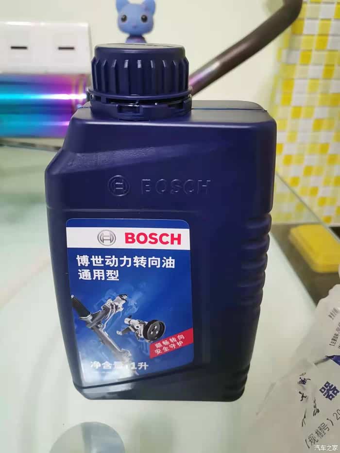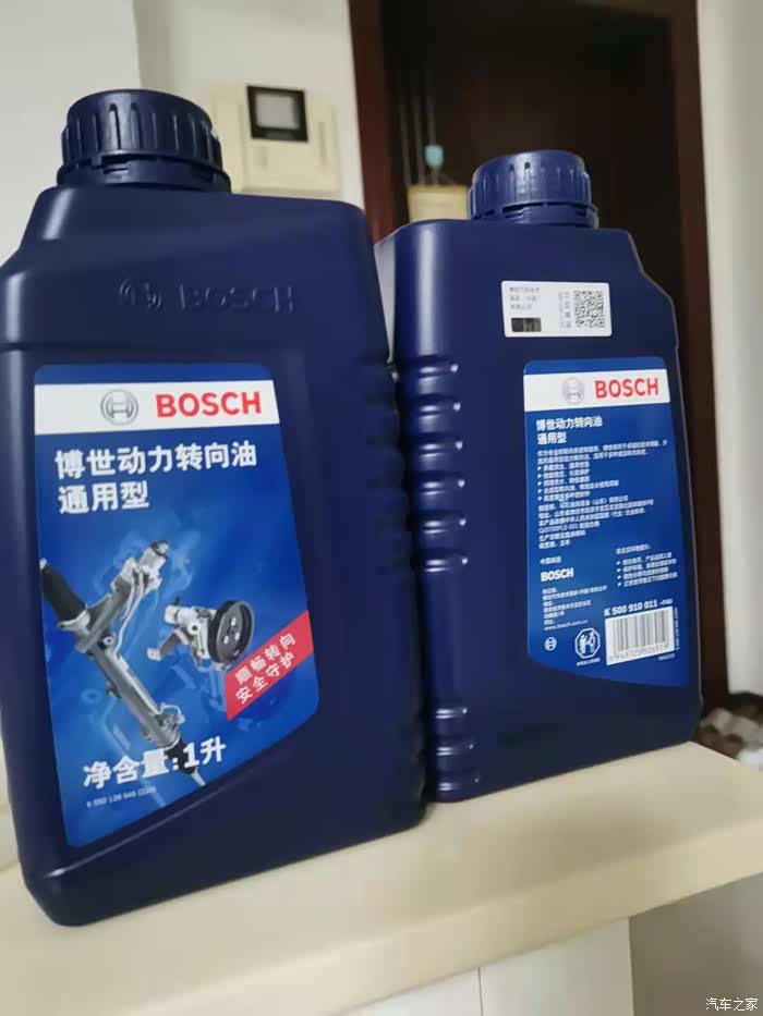 这次从网络上查了一些资料,也参考了车友们diy发帖的更换经验,就想自己动手更换,所以就网购了”博世助力转向油2瓶,1升/瓶。