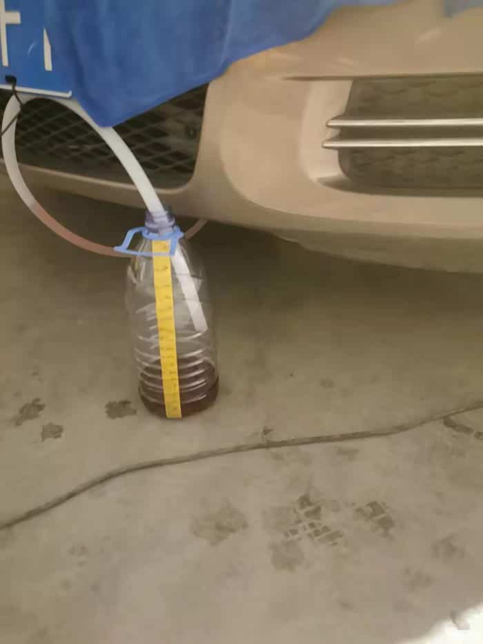 然后将车熄火,切换阀门让回油管连通到废油瓶,并关闭流到油壶的阀门,再次启动车辆3秒熄火,让油排到废油瓶里。