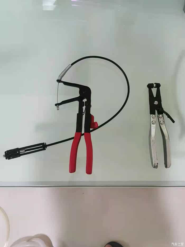 准备工具:购买了2把弹簧卡箍钳子,其中一把是延长线钳子。