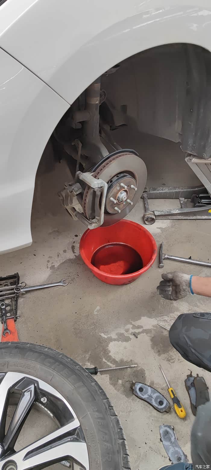 刹车片5万左右就该清理一下。刹车盘,刹车片,分泵,活塞环内部,分泵导销。