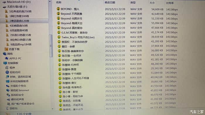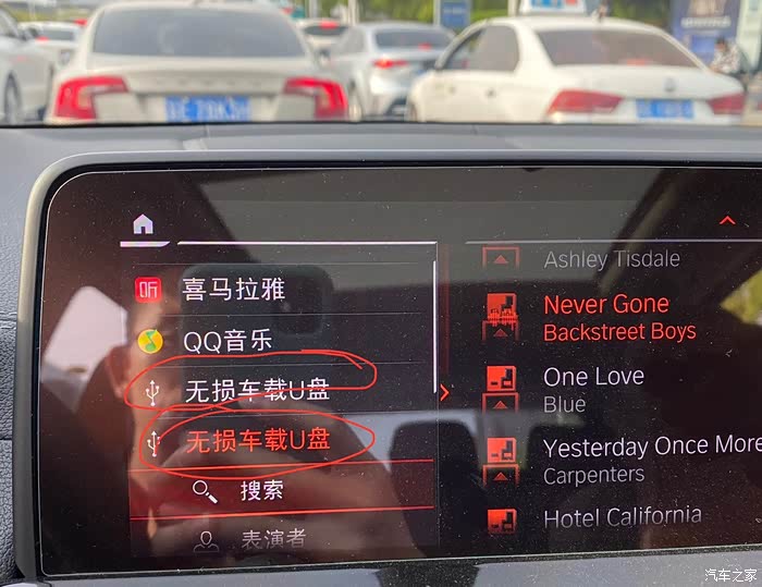 4. 实测20款X3 能同时插两个U盘(中控下和扶手箱里),两个都在媒体里面显示,可以分文件夹,无损的WAV和FLAC格式都能播放
