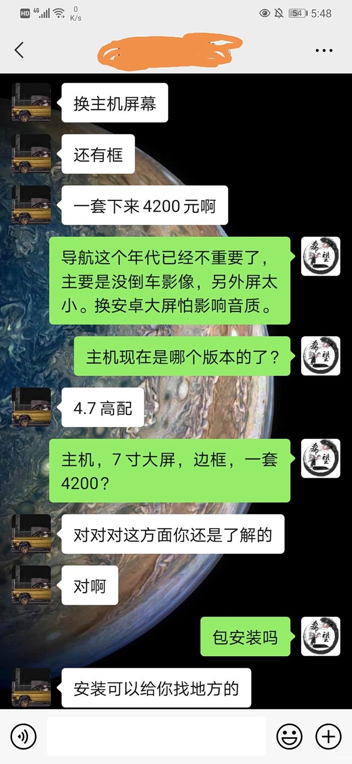 剩下,倒车雷达用的还不是太习惯,看灯不知道亮几颗才该停。想加个倒车影像。我的车是300时尚,屏幕小,不知道加完效果怎样。就想着把主机和大屏一起改了。原厂7寸大屏+NGT4.7主机不算安装4200就能搞定。这在过去都得过万吧?真是旧时王谢堂前燕,飞入寻常百姓家呀。真的,虽然现在安卓大屏横行,我还是觉得原厂的好。