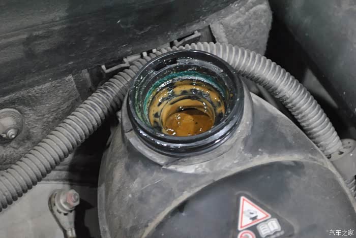 维修师傅一打开机舱,防冻液都乳化了,我了个去,吓我一跳,心里咯噔一下感觉要大修了,好端端的防冻液怎么会乳化呢,窜机油了