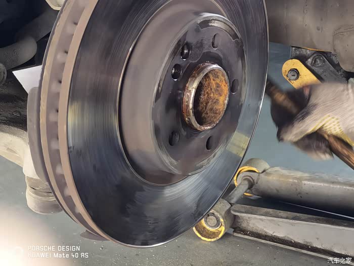 原车的轴头彻底锈蚀了,小师傅整了半天的WD40,后来我看实在费劲,我就给小师傅说,你上大锤吧