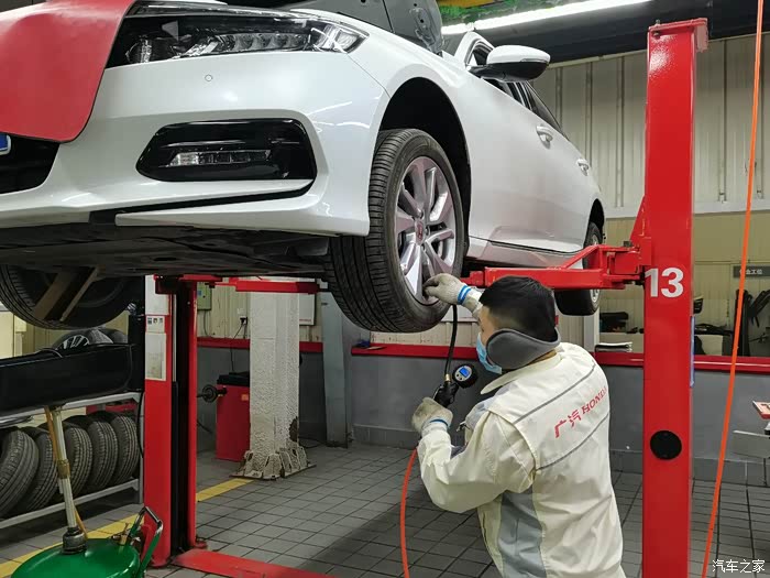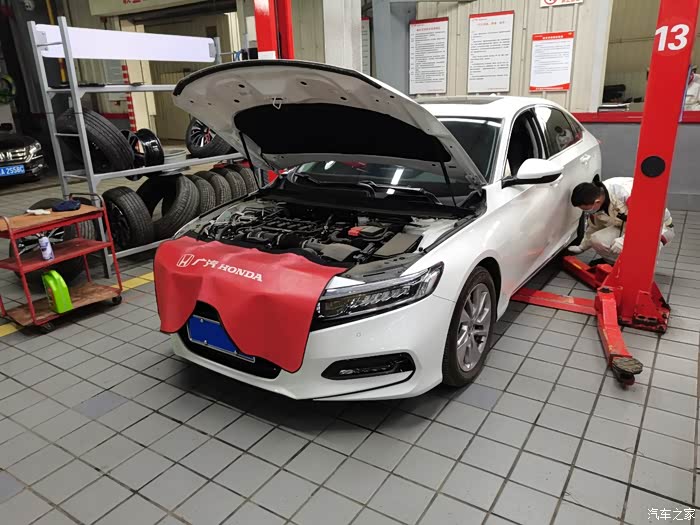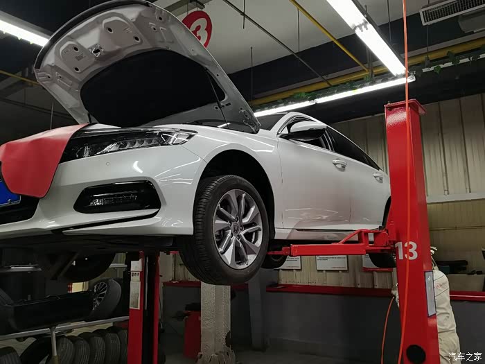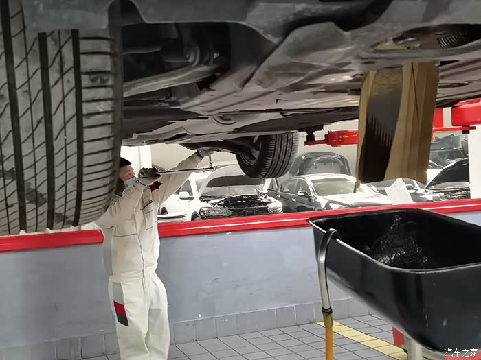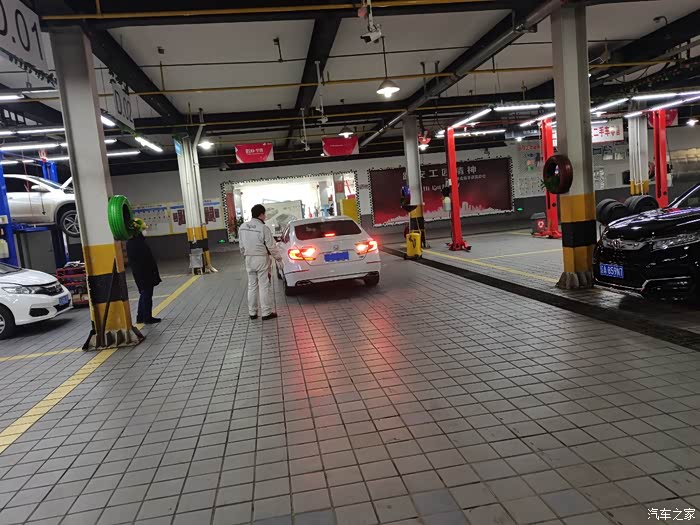这时候接到通知,可以保养了,我迅速抵达保养车间,正好刚上工作人员倒车上抬架,我的车无论是维修还是保养,我都必须陪伴左右,爱谁谁。