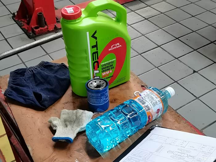 保养品很简单 绿桶半合成0w-20机油,机滤,和玻璃水,玻璃水是送给我的,我就好奇为啥不送我一瓶矿泉水,我有些口渴。